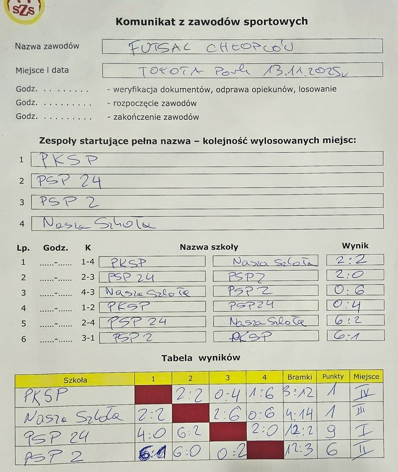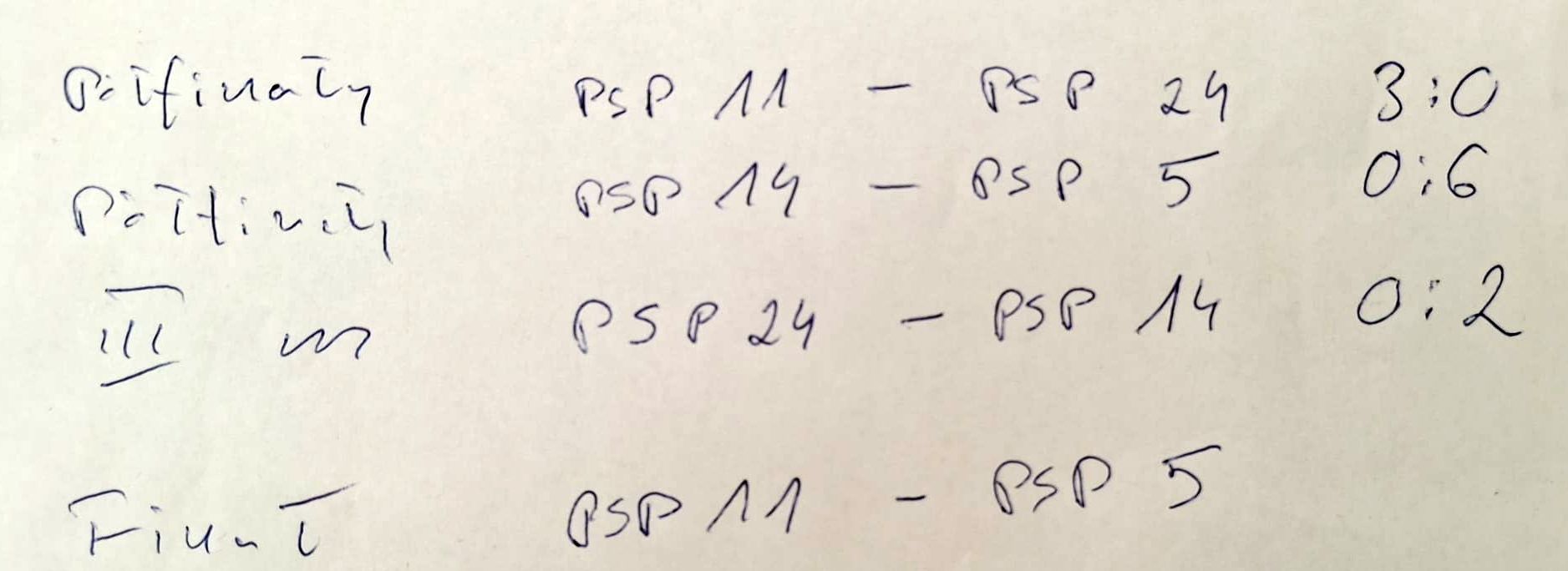 z kolei w swojej grupie pokonali PSP-28 i ulegli PSP-2. Da³o im