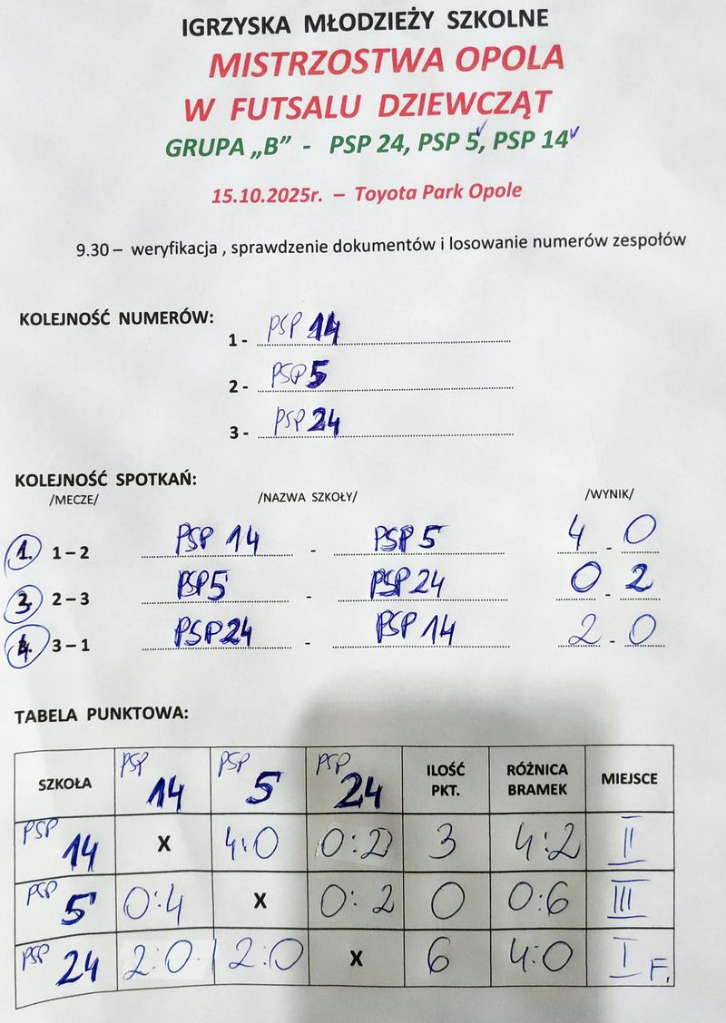 z kolei w swojej grupie pokonali PSP-28 i ulegli PSP-2. Da³o im